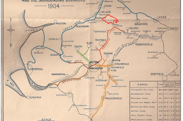 The first map shows the bypasses of Laneshaw Bridge. Only one of these is needed, and the southerly one does not allow an 85-metre blade to turn.