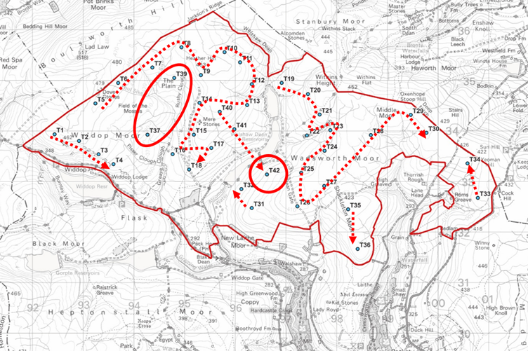 [2.1] The method of WTRG is to study the turbine sites one by one and write a long blog (2000-8000 words) with photographs (10-20) and bespoke maps, focussed on a single turbine site. The group use their skills in cartography, engineering, applied mathematics, ornithology, peat science, economics, nature photography, poetry, and history to develop and promote a multi-disciplinary understanding of Walshaw Moor, CWF and CEP.